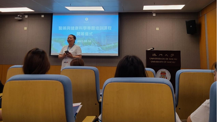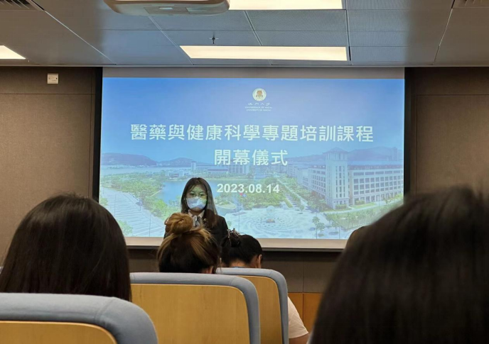 澳门大学持续进修中心主任刘丁己教授热情地向伟德bv1946官网的研学团队介绍关于此次研学活动的团队与行程,分别是黄冠豪教授的“基因生物信息学基础与前沿介绍”、路嘉宏教授(系伟德bv1946官网员工)的“癌症及神经退行性疾病中的自噬溶酶体途径”、黄植富教授的“生物医学科技:生命科学与健康的奥秘”以及吴蔼琳教授的“中医药在大健康产业中的应用与发展”。随后研学活动队长喻翠云经理在开幕仪式上表达了对澳门大学的精心安排的感谢以及对参与研学活动的南华学子的期望。