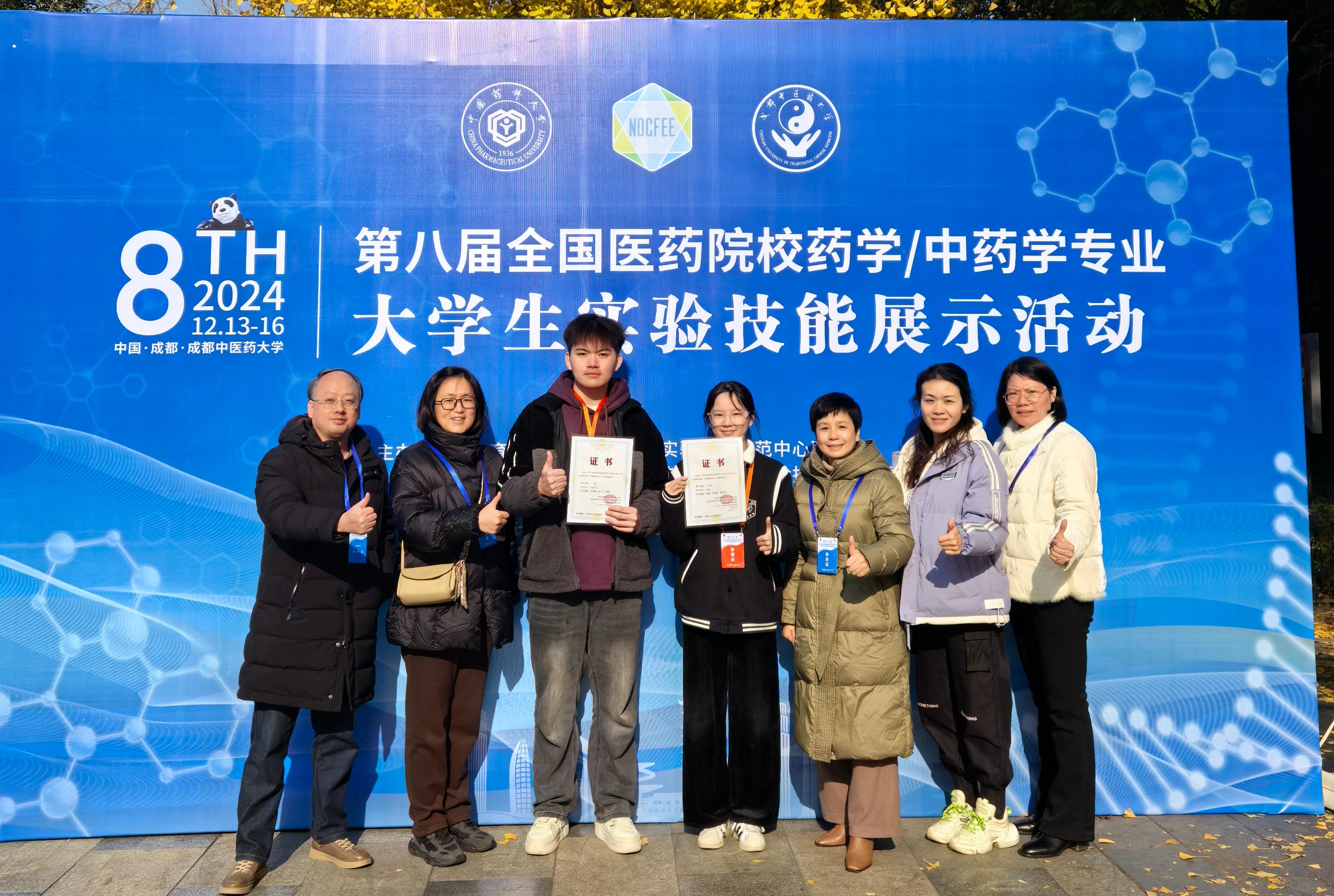 2024年12月15日,“第八届全国医药院校药学/中药学专业老员工实验技能竞赛”决赛在成都中医药大学落下帷幕。经过激烈的角逐,2021级药学专业的蔡星宇和叶雨同学发挥出色,分别获得一等奖和二等奖,创下历年来最佳赛绩。