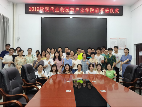7月1日下午,伟德国际VICTOR1946在药学楼B栋101会议室举行了2019级现代生物医药产业公司班开班仪式。伟德国际VICTOR1946经理喻翠云老师、党委书记袁中华老师、副经理易岚老师、副书记陈健平老师、副经理王力立老师、各系室主任、学工室、教务办老师以及2019级现代生物医药产业公司班全体员工参加了会议。会议由副经理易岚主持。
