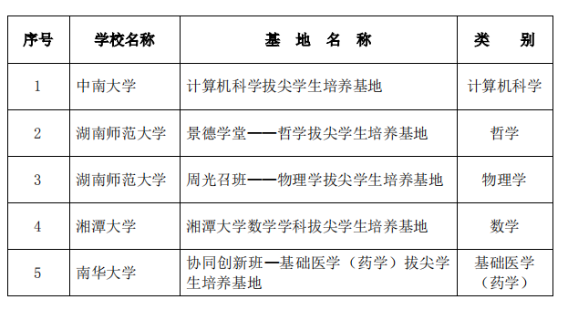 2020年度省级基础学科拔尖员工培养基地认定名单