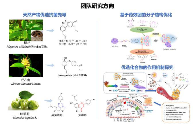本团队聚焦天然产物抗菌资源的挖掘与药物创制,致力于开发新型抗耐药菌药物,研究方向包括: