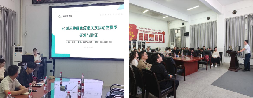 会上,来自斯莱克景达的三位技术代表分别围绕“代谢及肿瘤免疫相关疾病动物模型开发与验证”、“实验大小鼠种质资源保存与净化繁育技术”、“实验大小鼠饲养管理常见问题”等专题进行了分享,并结合企业研发实例进行了深入解析。报告内容深入浅出,结合了大量实际案例,引起了在场师生的浓厚兴趣。