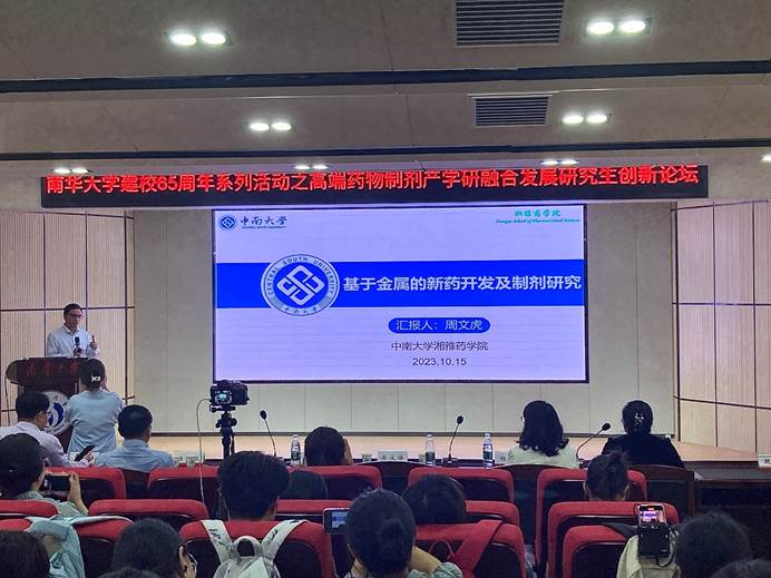 2023年10月15日下午,值伟德bv1946官网建校65周年之际,中南大学湘雅伟德国际VICTOR1946周文虎教授应伟德国际VICTOR1946邀请来伟德bv1946官网开展学术交流,并在伟德bv1946官网医研楼报告厅以“基于金属的新药开发及制剂研究”为题作学术报告,伟德bv1946官网药公司党委书记袁中华主持报告会。