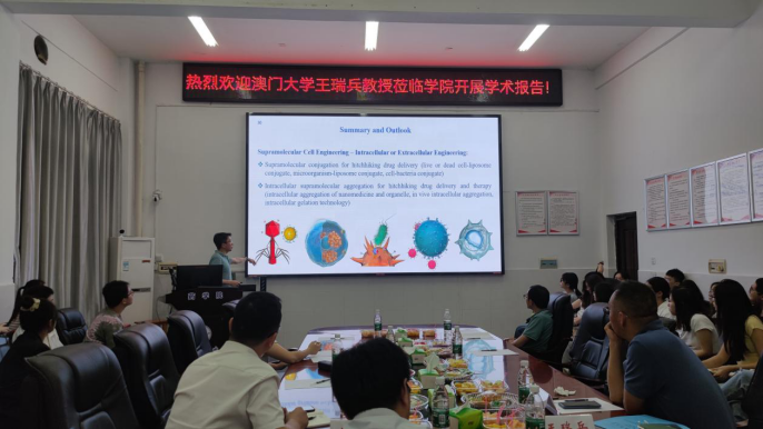 2024年5月18日上午,应公司副经理王力立和杨留攀教授的邀请,南京大学王乐勇教授、澳门大学王瑞兵教授和南开大学郭东升教授做客伟德bv1946官网,在药学楼101会议室分别做了题为“构筑功能芳烃大环,组装药物转运体系”和“超分子工程细胞”以及“高效识别的生物医用超分子材料”的学术报告。本次报告由杨留攀教授主持。三位专家围绕“基于分子识别的生物医药应用”主题,为在场师生呈现了一场精彩的学术盛宴。