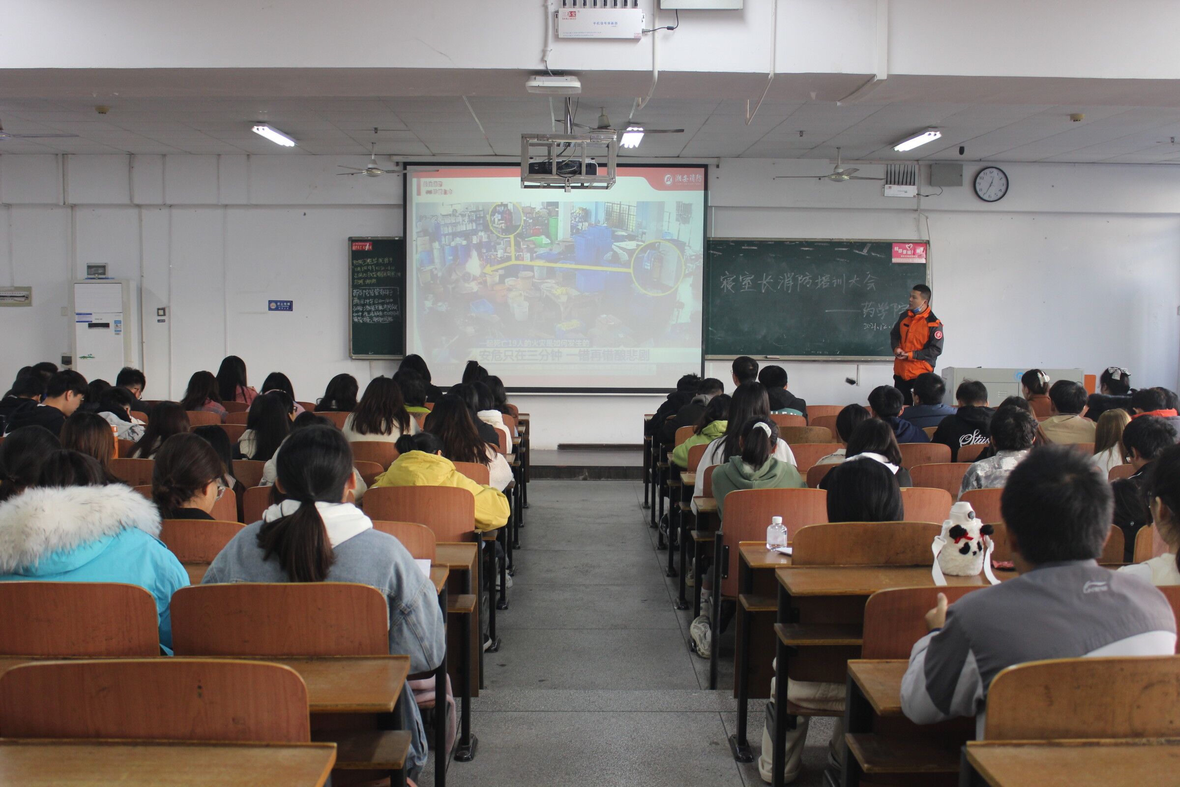 为进一步普及消防安全知识,提高员工火灾防控和应急自救能力,筑牢校园消防安全“防火墙”,12月6日中午,伟德国际VICTOR1946在南华楼212教室举办寝室长消防安全培训大会。本次会议邀请了湖南省消防协会教员李荣主讲,辅导员姚顺超以及全体寝室长参加了本次会议。