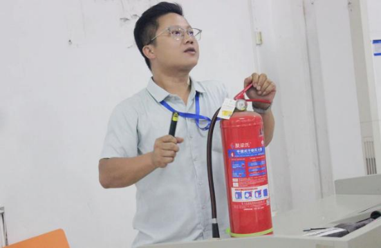 首先,普法消防中心的消防教官王坤对现场师生进行消防培训。他通过案例视频向大家讲解了生活中因不规范使用电器而造成火灾险情的危险事件,同时科普了火灾预防的相关知识、日常消防器具的正确使用方法,以此提醒大家提高警惕,注意日常生活中的安全隐患。