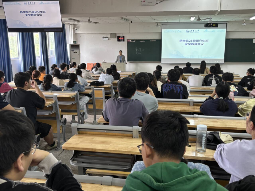 金秋时节,9月26日,2025级研究生首次班会在南华楼211教室举行。本次班会以“安全教育””为主题,围绕实验室安全规范、全面安全防护及纪律要求进行。药公司党委副书记陈健平、药物药理研究所所长谢志忠以及25级研究生班班主任尹富城、许婷、杨思慧等老师出席与全体新生深入交流,为研究生科研生涯筑牢安全基石。
