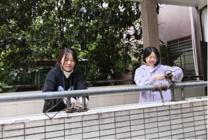 活动前期,党支部通过线上会议明确目标、划分区域、强调安全,并备齐剪刀、手套、垃圾袋等清洁工具。活动现场,党员同志满怀热情投入工作,针对公司教学楼、绿化带等处护栏上缠绕的废弃绳子、横幅残片等杂物,大家分工协作、默契配合。面对部分顽固缠绕杂物,同志们耐心用工具小心裁剪、逐步剥离,确保不损坏护栏设施;发展对象以党员为榜样,积极主动参与劳动,展现出强烈的责任意识和服务热情。