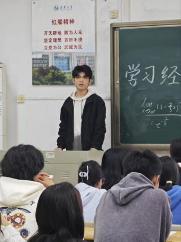高等数学分享专场上,郭书伸从“课前预习—课堂听讲—课后复习”流程入手,帮助新生构建清晰学习路径;许素玉强调紧跟授课节奏、及时完成练习的重要性,避免知识堆积;何婷妃则分享公式记忆与概念理解技巧,并建议考试中合理分配时间、注重审题检查,提升答题质量。