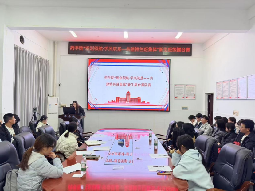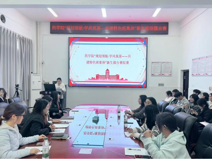 各班按抽签顺序上台展示,从规划内容、展示表达、特色创新三个维度展开规划,展现出班风塑造理念、学风建设机制、特色文化品牌打造计划、学科竞赛与创新能力培养路径。药拔2501班提出“一二三四”的具体规划和“二升二强”的预期目标;药学2504班着力营造“团结互助、勤学善思”的良好班风;药学2509班融入可持续、可传承的班级文化基因。他们用创意、思考和激情,描绘了一幅幅未来班集体的动人画卷。这不仅仅是一场比赛,更是一次关于成长、责任与梦想的集体宣誓。