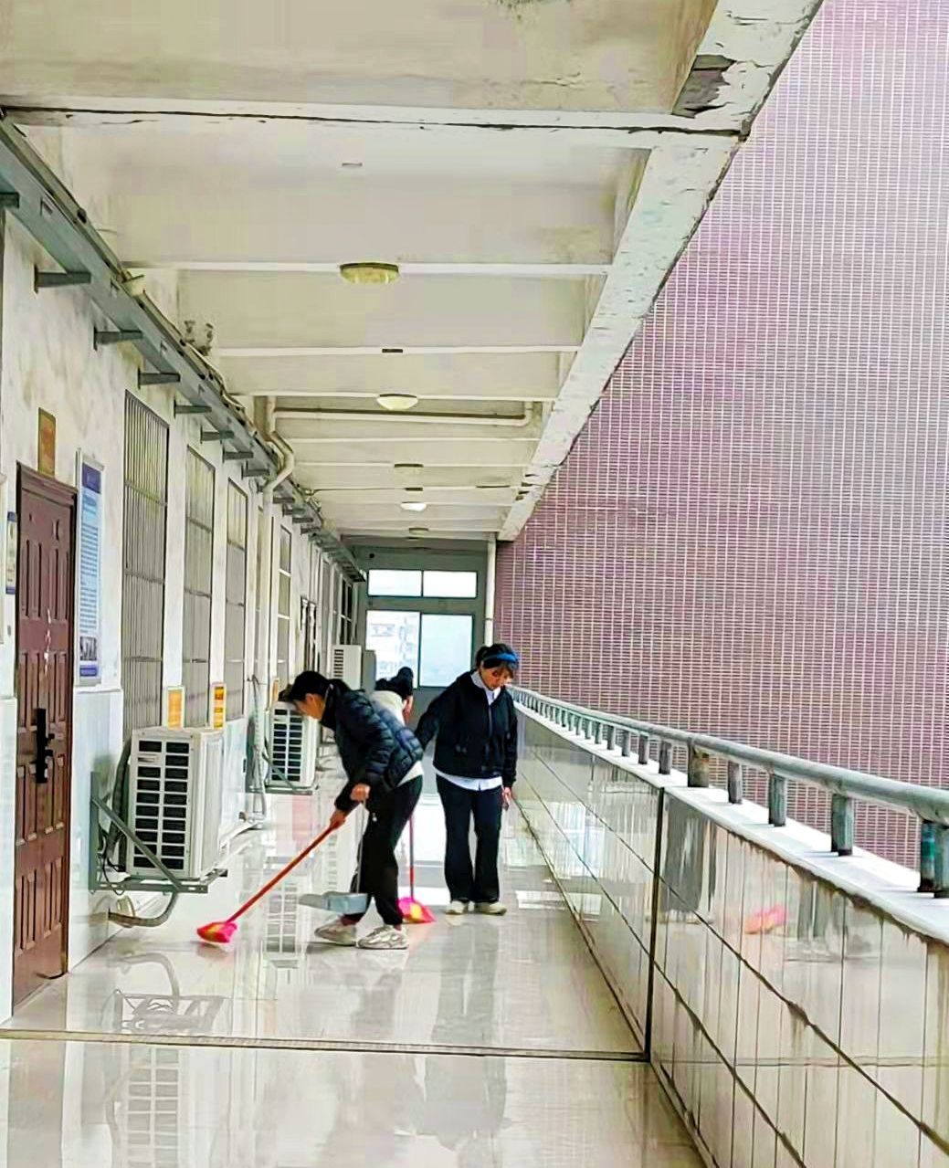此次活动主要内容为打扫教学楼公共区域卫生,包括走廊、楼梯、大厅等区域。141名入党积极分子分为九个小组,分别负责各自划分区域的卫生,小组内分工明确,成员们各司其职,各小组间默契合作,事半功倍。劳动过程中,同学们不怕脏不怕累,扫地、拖地、擦瓷砖、擦栏杆,以饱满的热情和极高的效率完成了对办公楼的打扫工作。此次实践活动的效果显著,整个教学楼呈现出焕然一新的面貌。