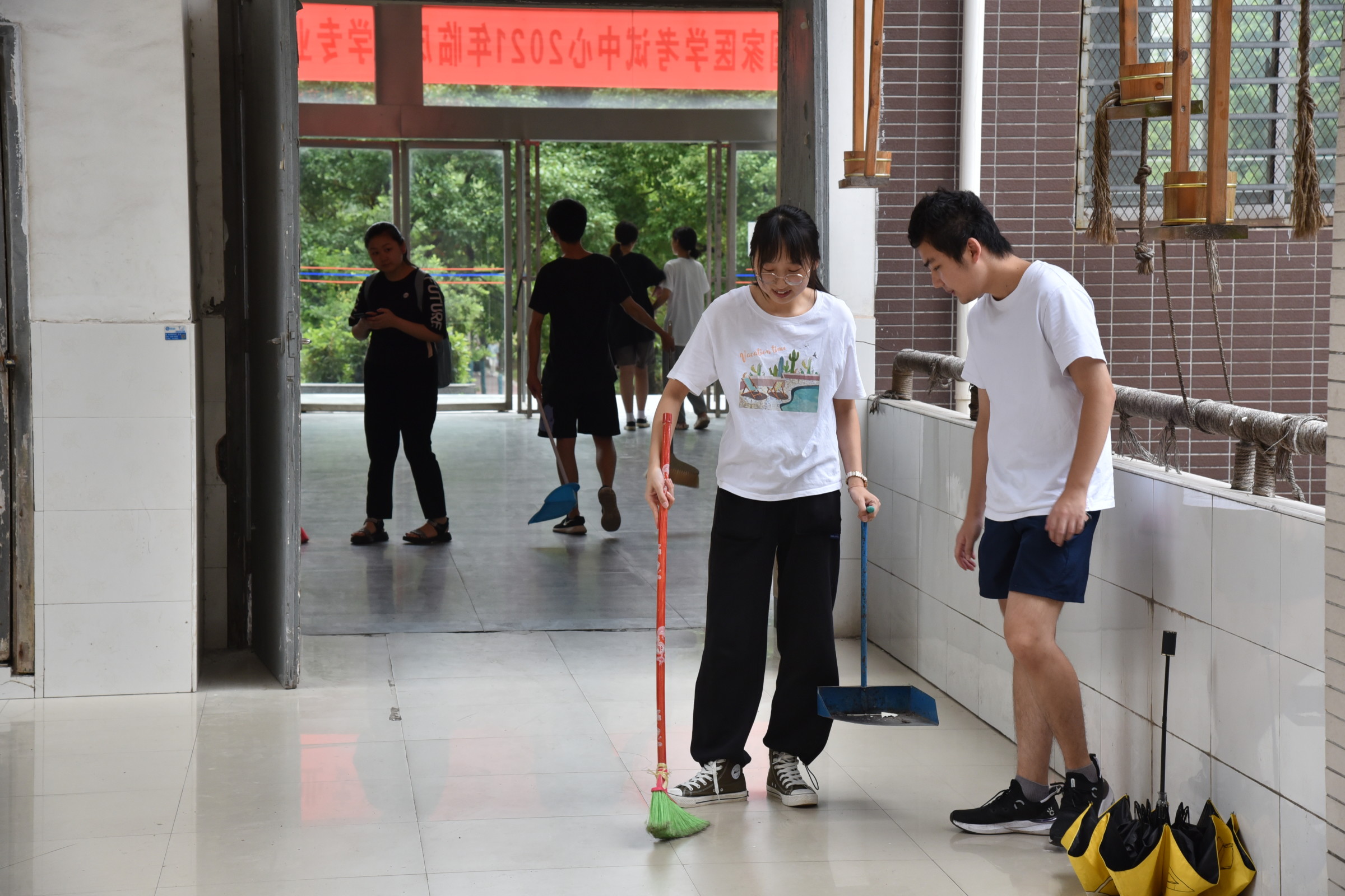 此次活动主要是对伟德bv1946官网红湘校区新二教进行卫生打扫,分工如下:18级负责打扫大厅和楼梯;19级1-5班负责打扫新二教B栋外围水泥地的左边,6-9班负责打扫右边;20级1-4班负责打扫1-3楼的走廊,4-7班和药拔1班负责打扫4-6楼的走廊。