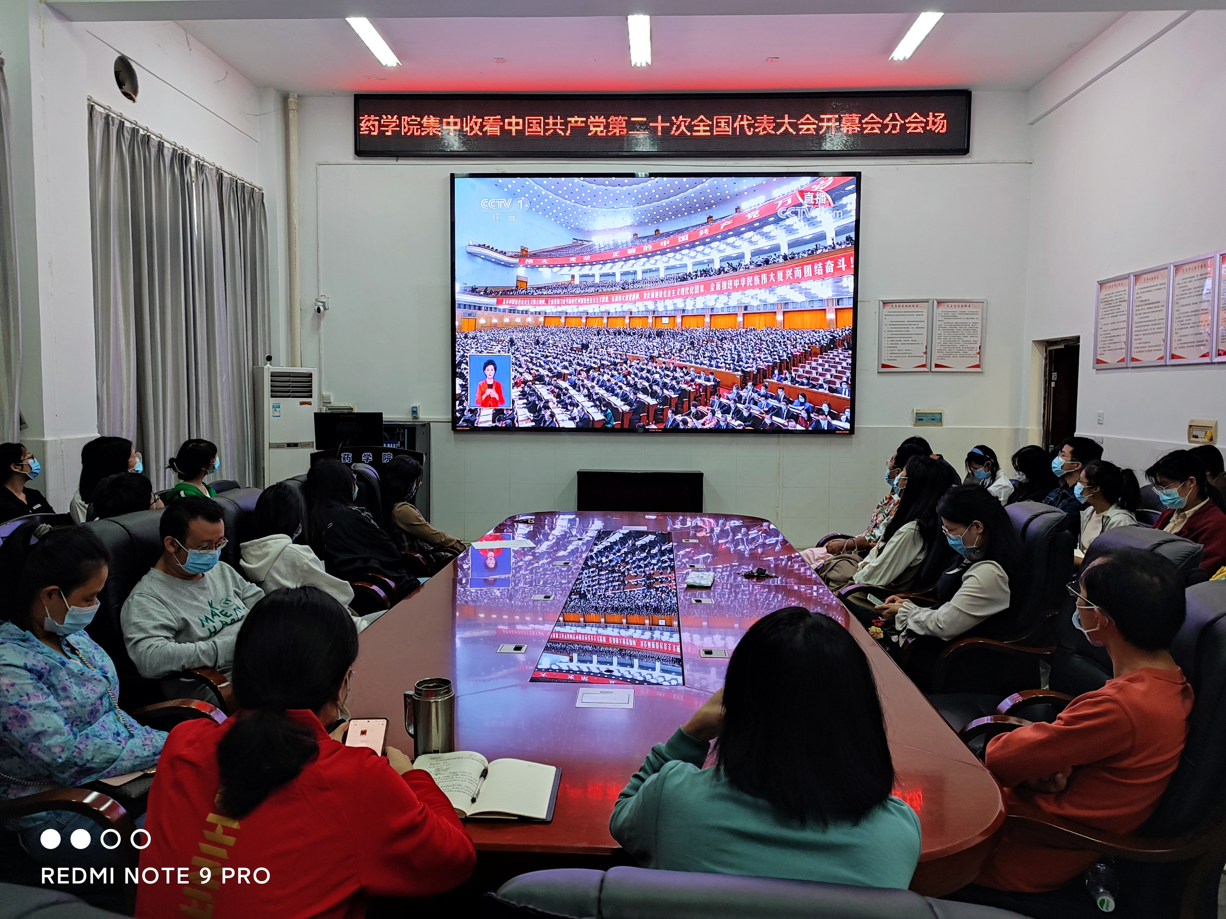 员工专场145人、师生线上1100余人同步观看了二十大开幕会。