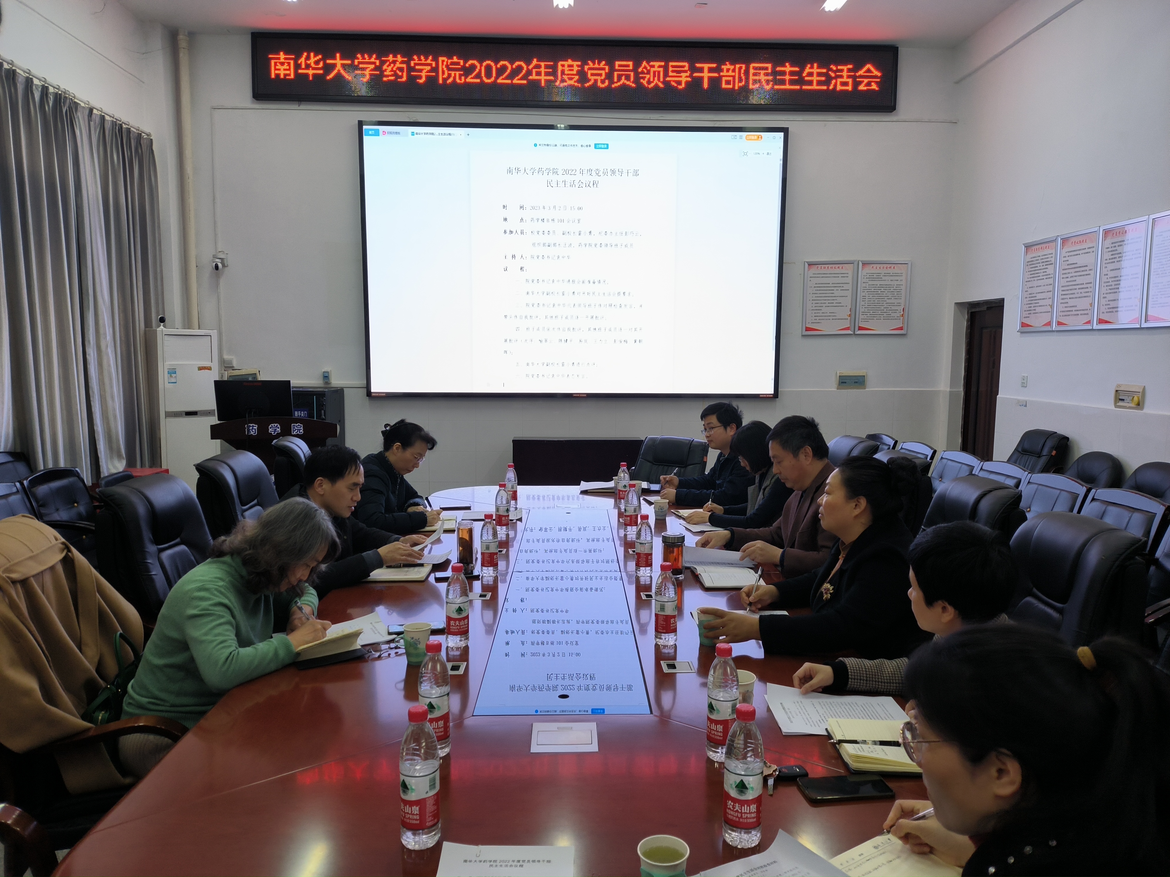 3月2日上午,药公司党委在药学楼B101会议室召开了2022年度党员领导干部民主生活会。公司党委委员、副董事长雷小勇,纪委办主任彭巧云,组织部副部长汪波莅临指导,公司党委班子全体成员参加,公司党委书记袁中华主持会议。