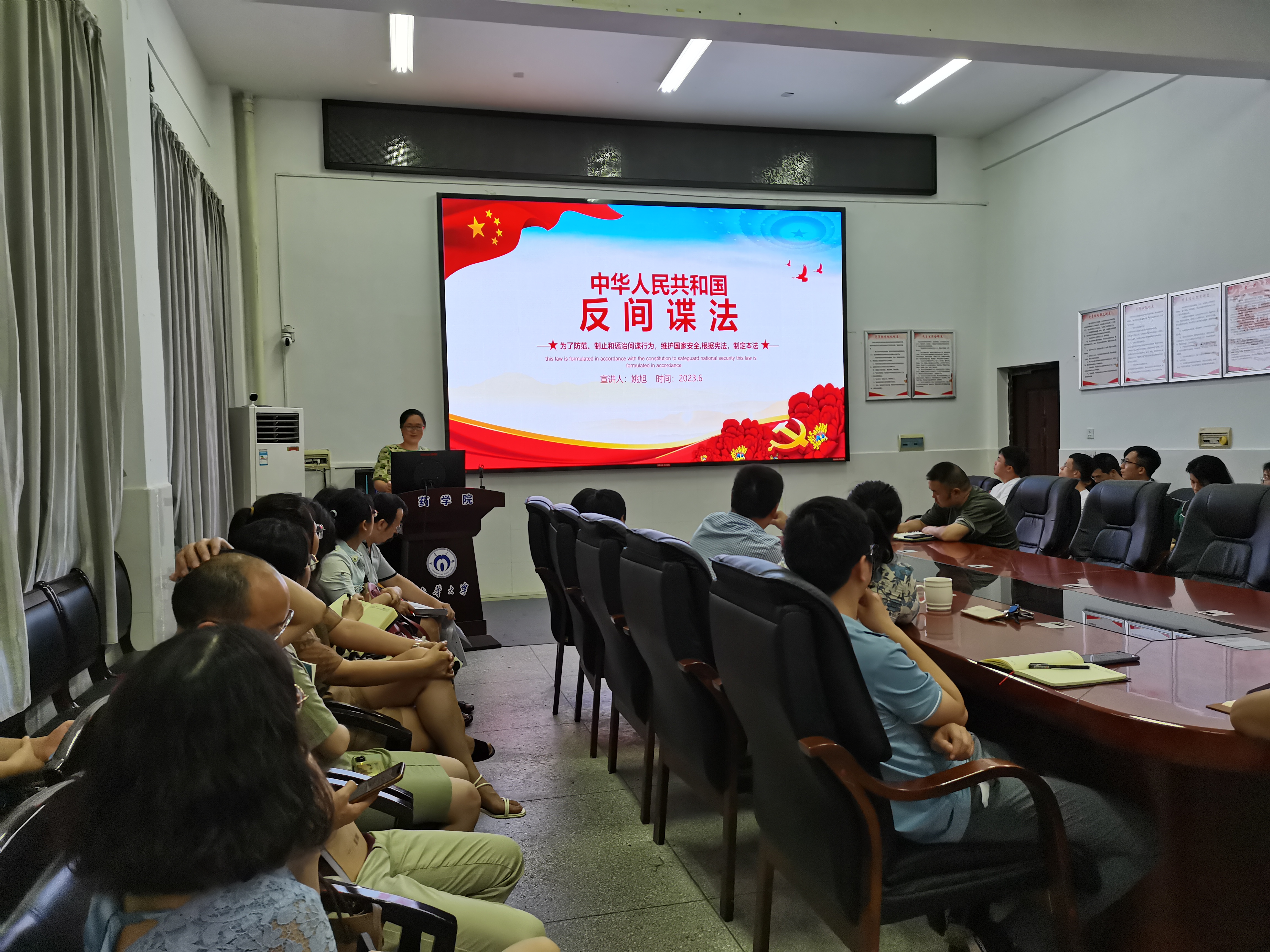 6月20日,教师第一、第二党支部组织教职员工在药学楼B101开展2023年第4次教职工理论学习,深入学习贯彻党的二十大精神,认真学习贯彻习近平总书记关于意识形态工作以及发扬斗争精神、应对风险挑战、贯彻总体国家安全观的重要论述。