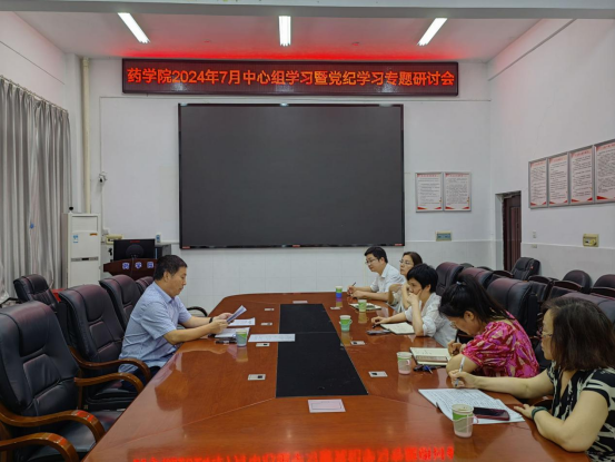 2024年7月5日下午,伟德国际VICTOR1946第7次中心组集中学习暨党纪学习专题研讨会在药学楼B101会议室举行。会议由公司党委书记袁中华主持,全体党委委员及综合科主任参加学习会。