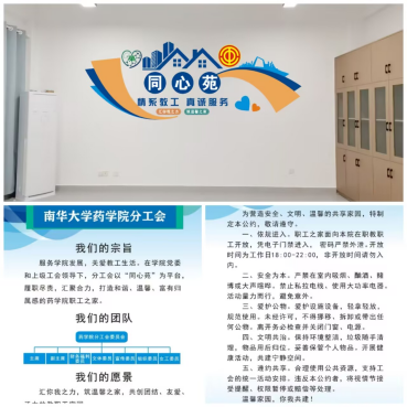 经过精心筹备与建设,伟德国际VICTOR1946分工会“同心苑”职工之家于近日正式落成并投入使用。“同心苑”职工之家位于药学楼B614室,旨在为全体教职工打造一个放松身心、交流思想、开展文化生活的“温馨家园”。