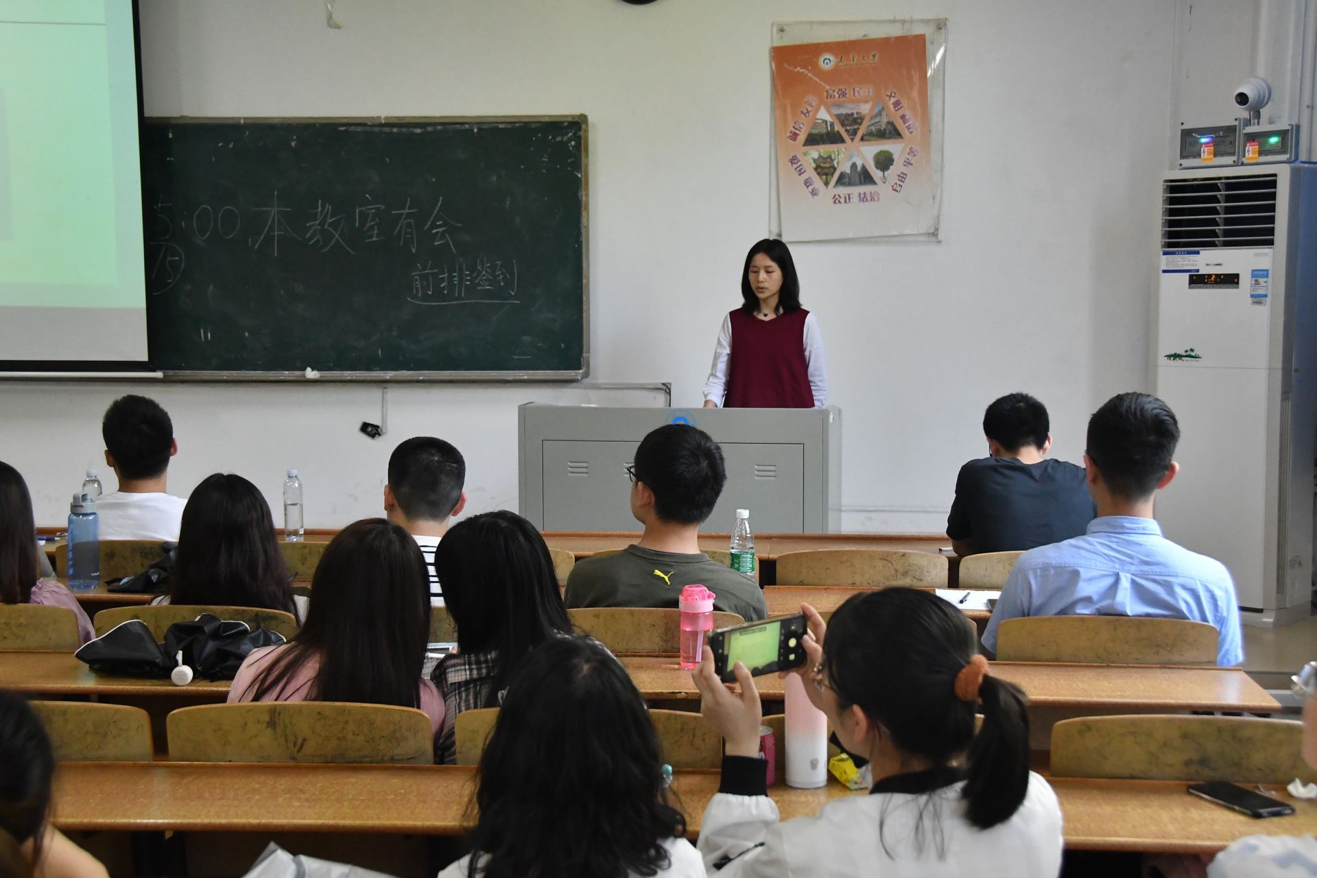 接着,陈佳嘉就公考向同学们分享经验。她重点从选岗、备考、体检、政审四部分介绍了公考的具体流程,让同学们对公考有了一个初步的了解。随后,黄亚晨就求职向同学们分享经验。他表示,求职时应明确目标,将个人兴趣与工作方向结合起来。他同时指出,交流即是学习,告诫同学们不要害怕在招聘会上与HR的谈话,另一方面也要保持清醒,“货比三家”,进行实际考察,争取找到一份最适合自己的工作。之后,严娇钊就保研向同学们做了介绍。她与大家解释了学硕与专硕的区别,并就保研的两个方面——保本校和保外校的具体操作做了论述,让同学们对保研要做的前期准备有了更深层次的了解。