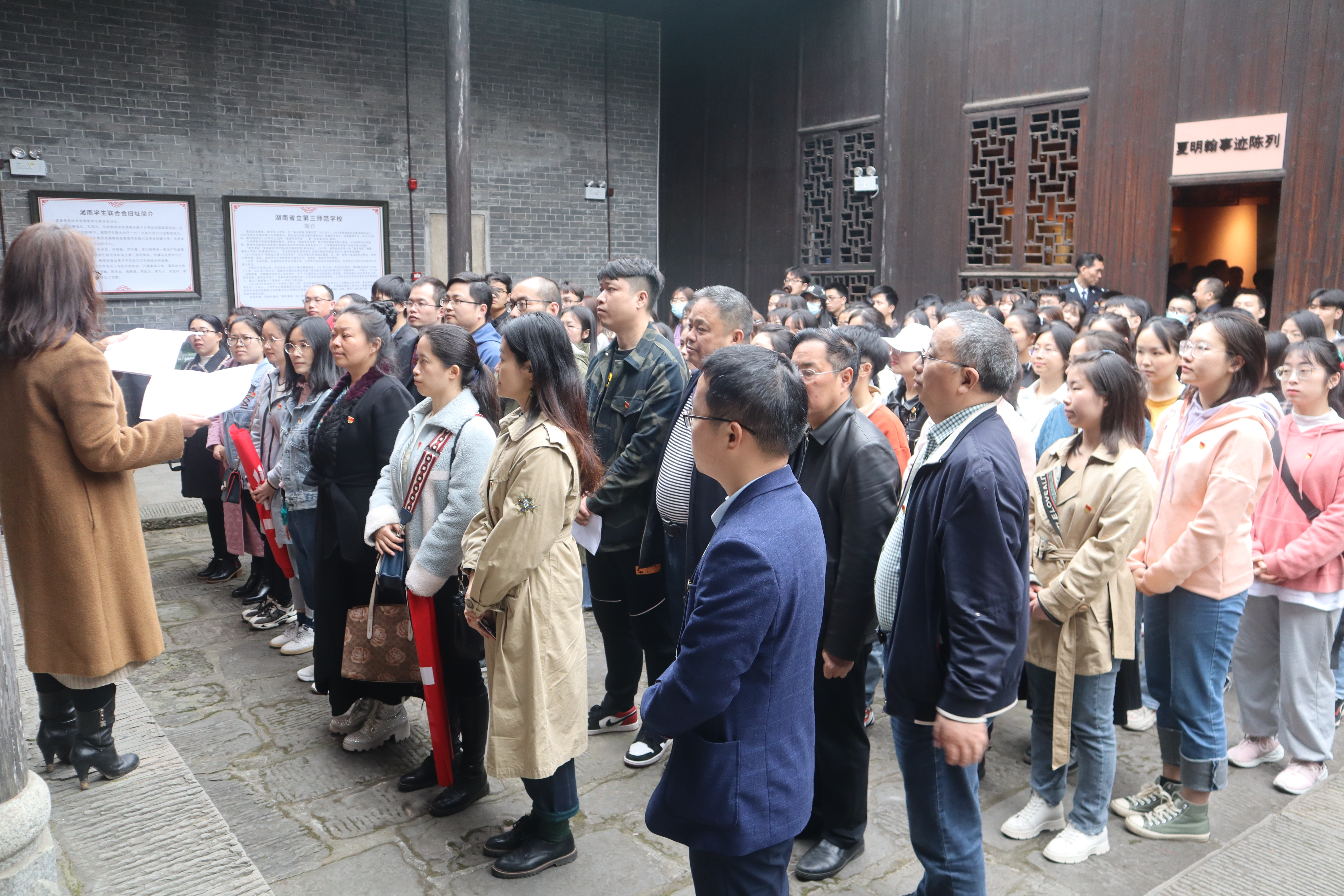 为庆祝中国共产党成立一百周年,回顾党的光辉历程,弘扬优秀革命传统,4月2日下午,药公司党委组织所属药理学教研室、药学系、药物制剂系党支部,研究生党支部,本科生党支部及综合党支部120余名党员走进湘南学联旧址,开展“学史明理,知史励行”主题党日活动,组织微党课学习、重温入党誓词、参观湘南学联等系列活动。