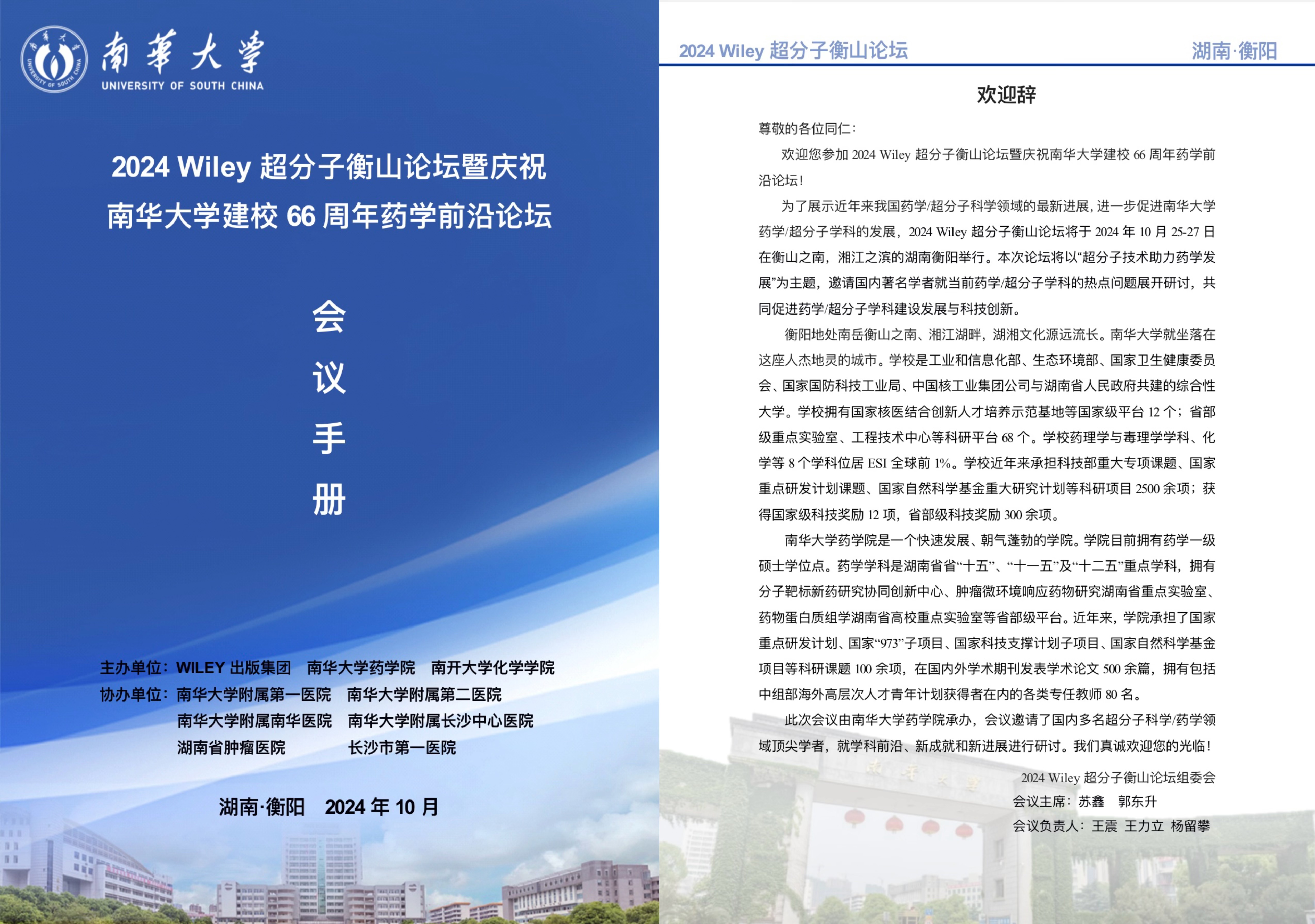 2024 Wiley超分子衡山论坛暨庆祝伟德bv1946官网建校66周年药学前沿论坛会议通知
